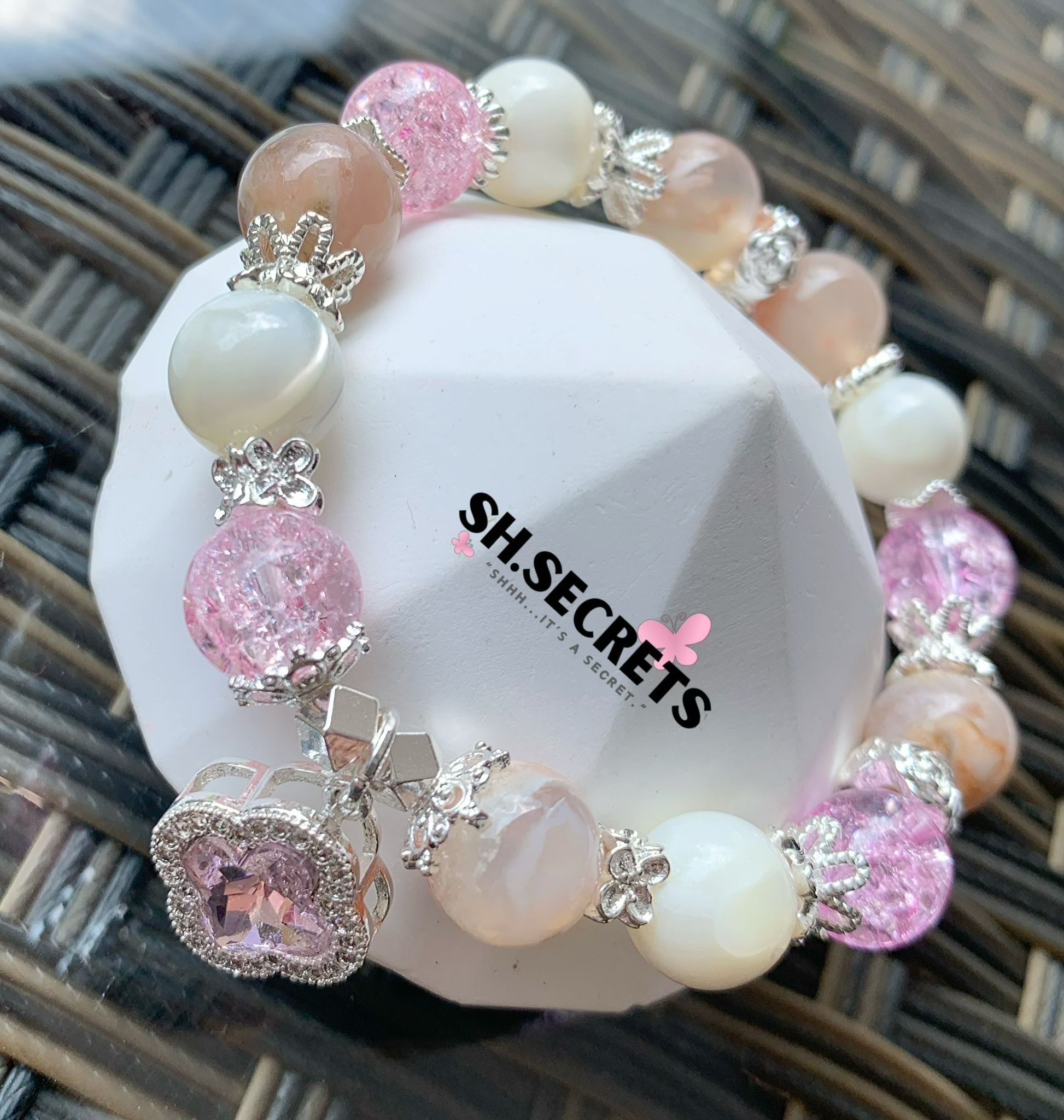 Rose Quartz, White Conch, Sakura Agate, Crackled Quartz (Pink)